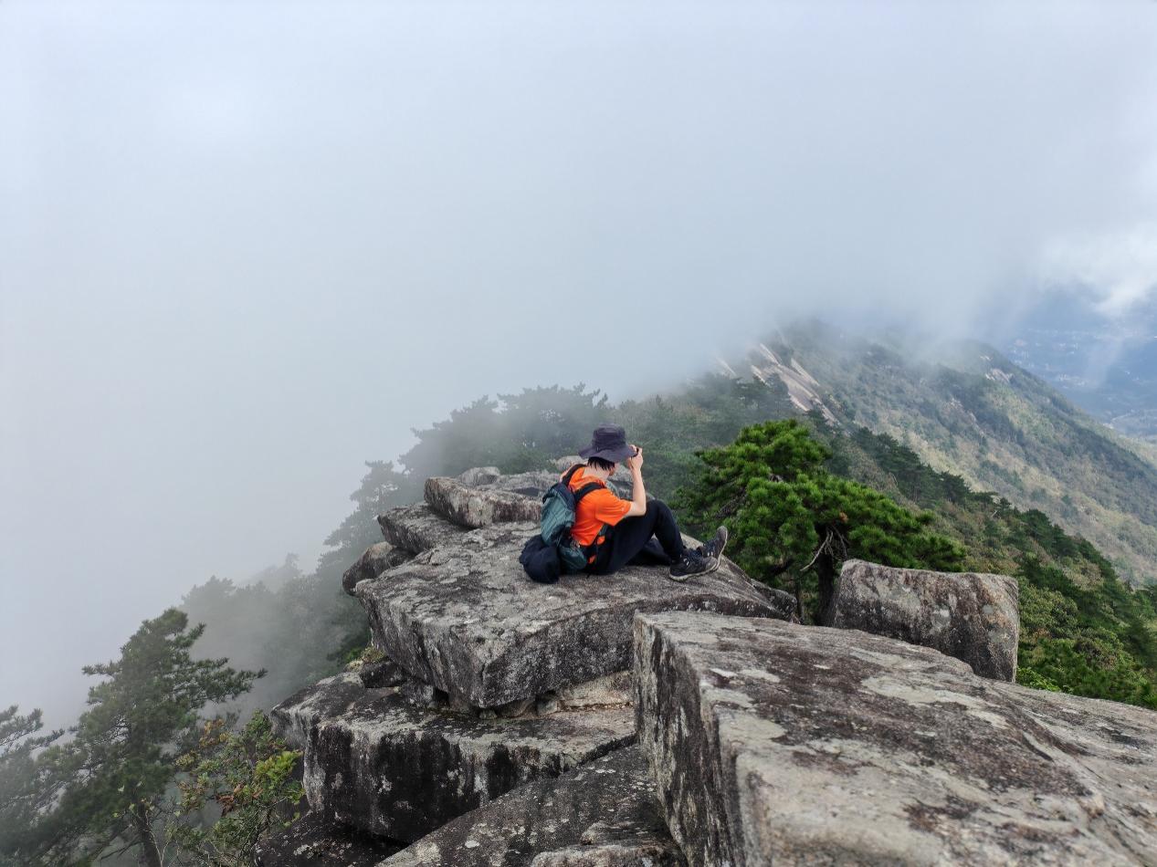 10 月 4 日清晨 6 点,队员们伴着晨气用餐,期待最后一天行程。7 点 15 分,队伍整装进山。上午 10 点 17 分休整后,向最高峰雷音寺塔进发,11 点半登顶。众人被层层叠叠、形似佛塔的巨石震撼,明晰 “雷音寺塔” 命名缘由;远眺山脊 “阴阳割昏晓”,奇松怪石错落,不禁感慨 “五岳归来不看山,黄山归来不看岳,驮尖归来不看黟”。