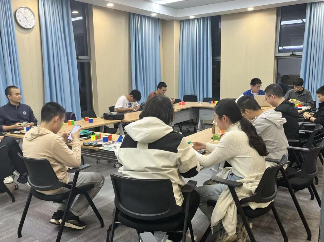值得一提的是,在协会的动员下,参与本次活动的同学们大多报名了即将于下周在合肥举办的WCA(世界魔方协会)合肥赛。在本次活动中,同学们进行了赛前动员与备战。参与同学在模拟比赛中锻炼实战能力,互相鼓励、共同进步,体现出良好的竞技状态与团队精神。